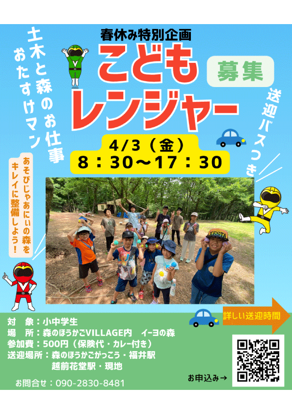 お申し込みはココをクリック☝️ 【こどもレンジャー募集】 春休み特別企画!皆んな...